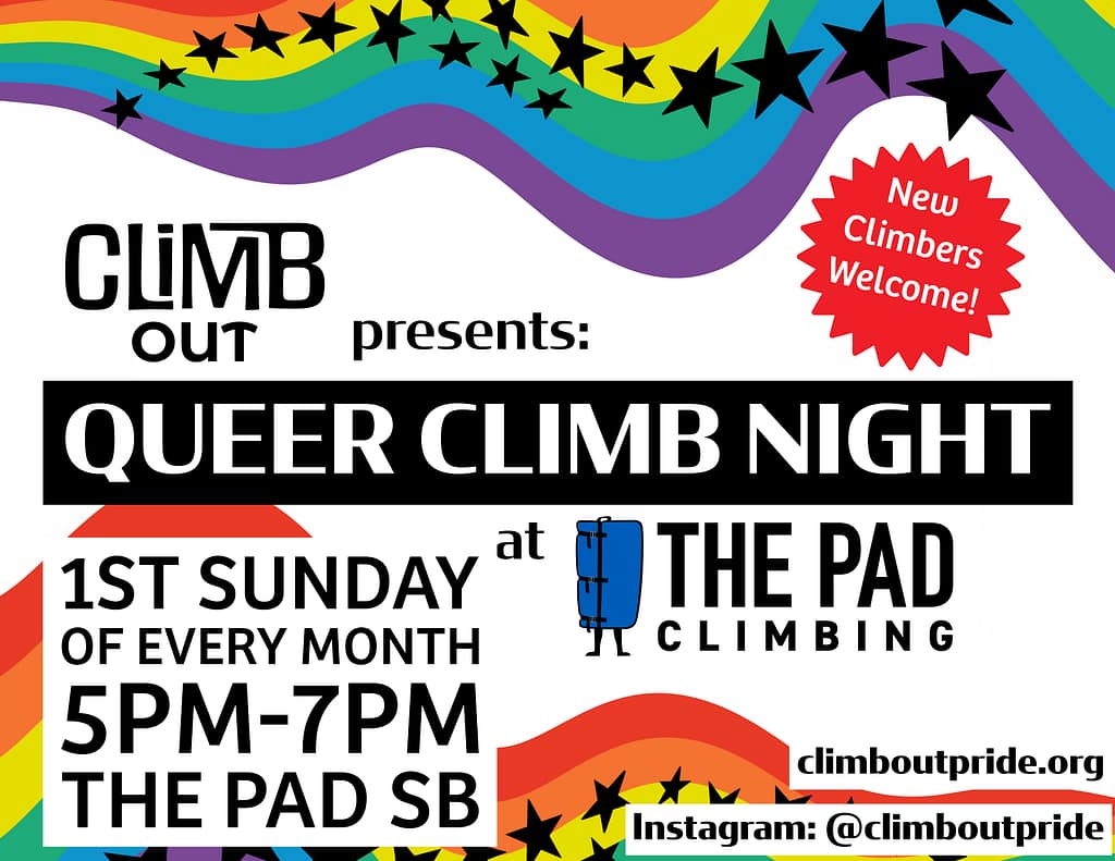 Queer Climb Night at The Pad is now on the 1st Sunday of every month!